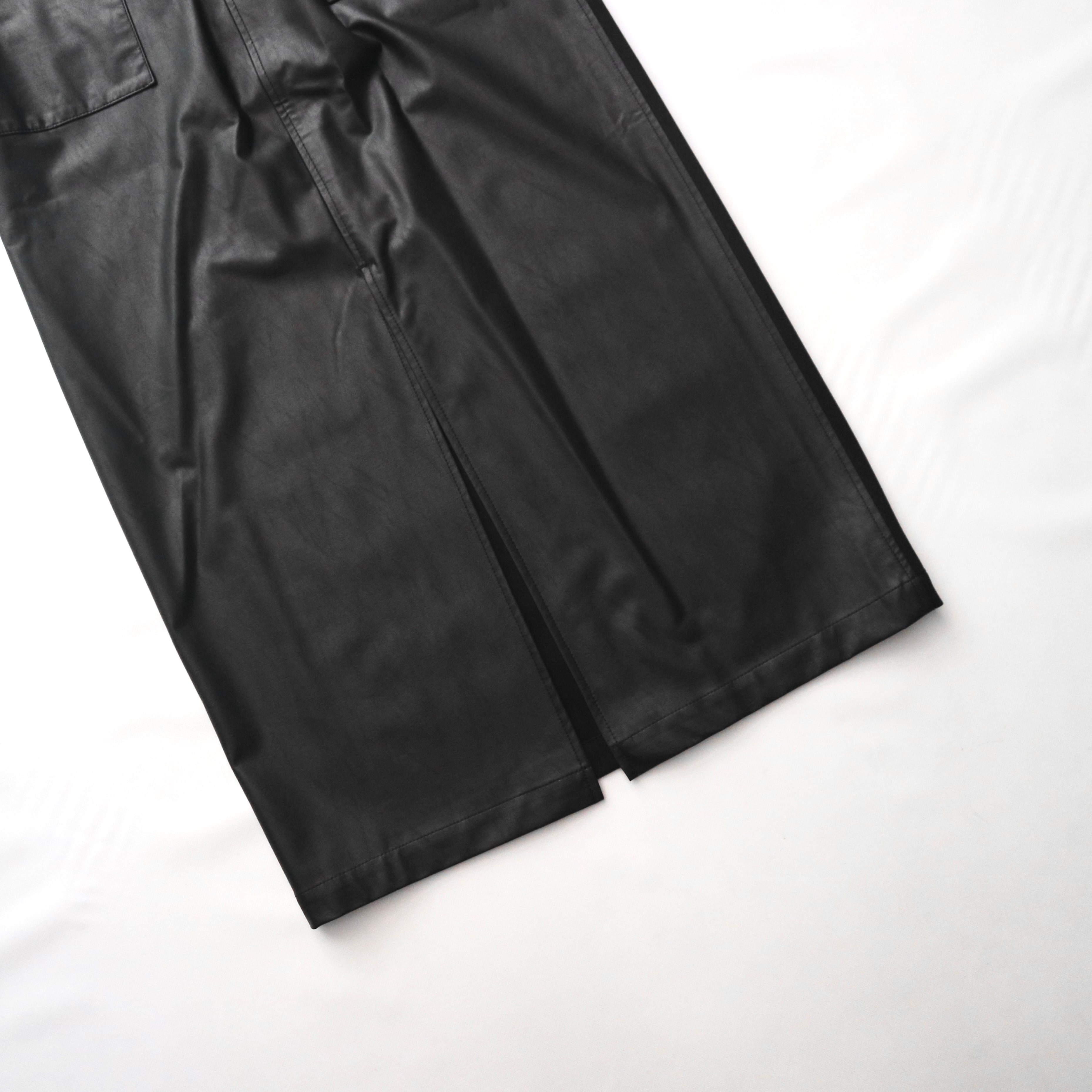 前面はフェイクレザー、後面はカットソー素材を使用した異素材使いのナロースカート。