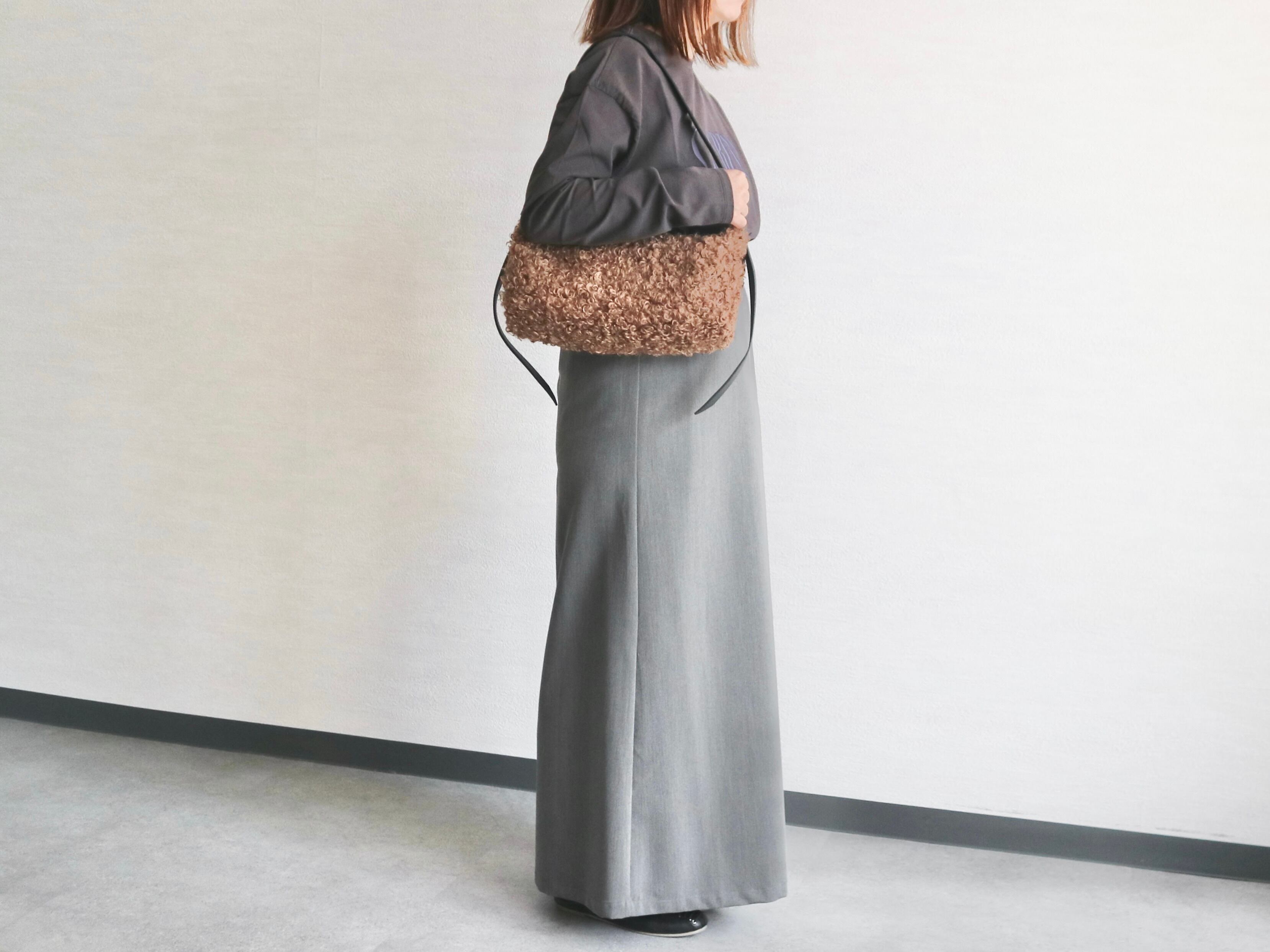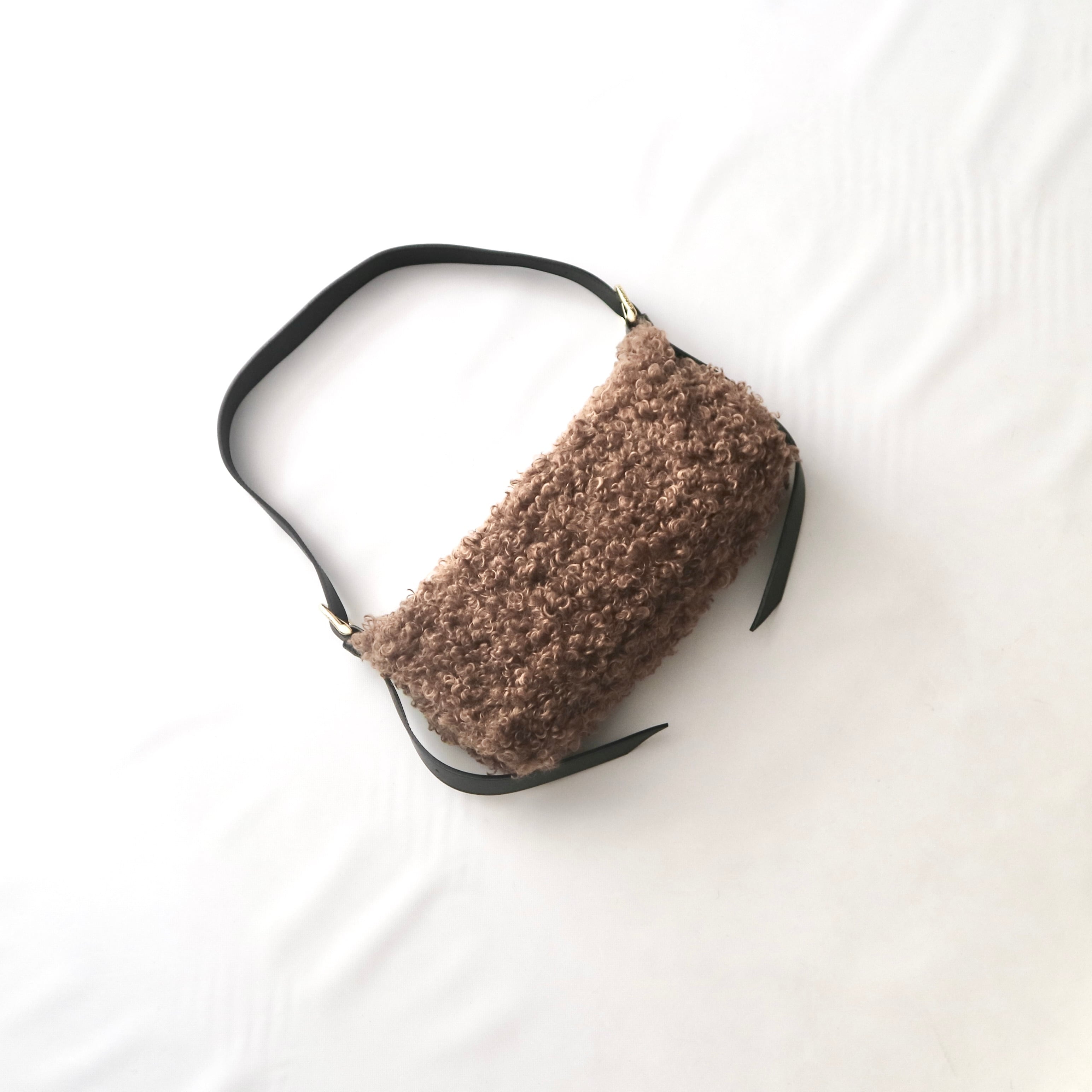もこもこしたカールが魅力のカルガンラムタイプのエコファーを使用したワンハンドルバッグ。