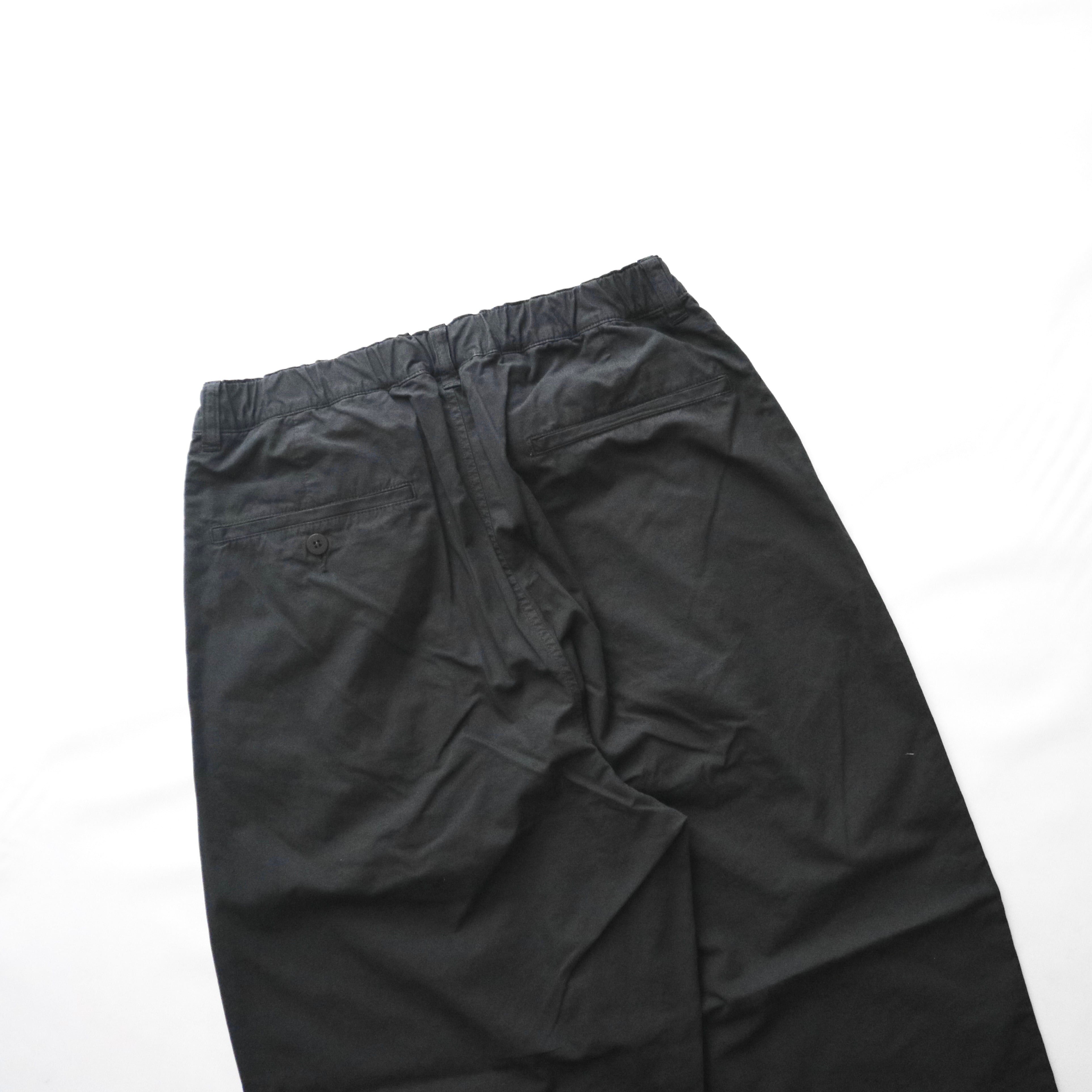 製品染めを施した反発感のあるコットン素材を使用したセミワイドテーパードパンツ。