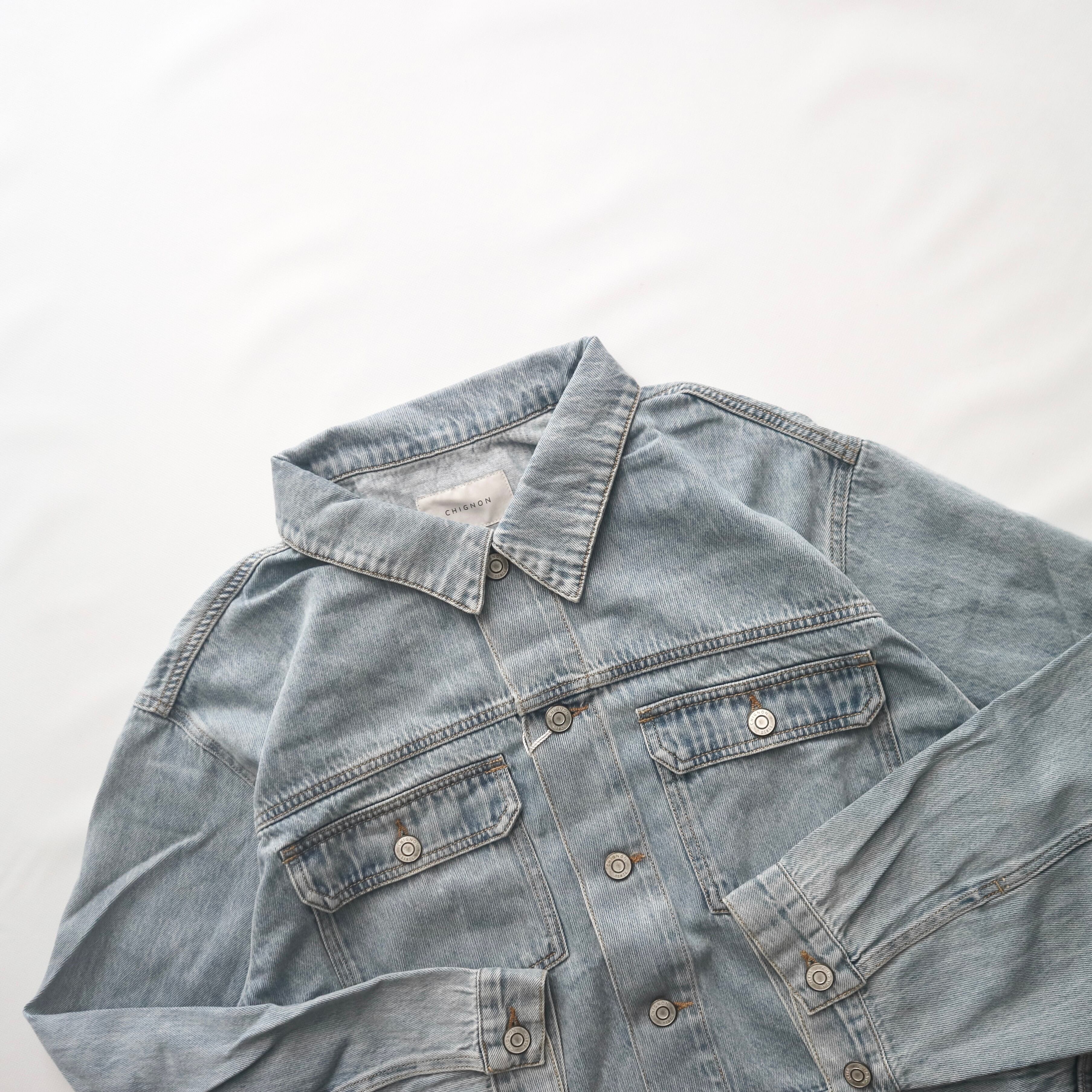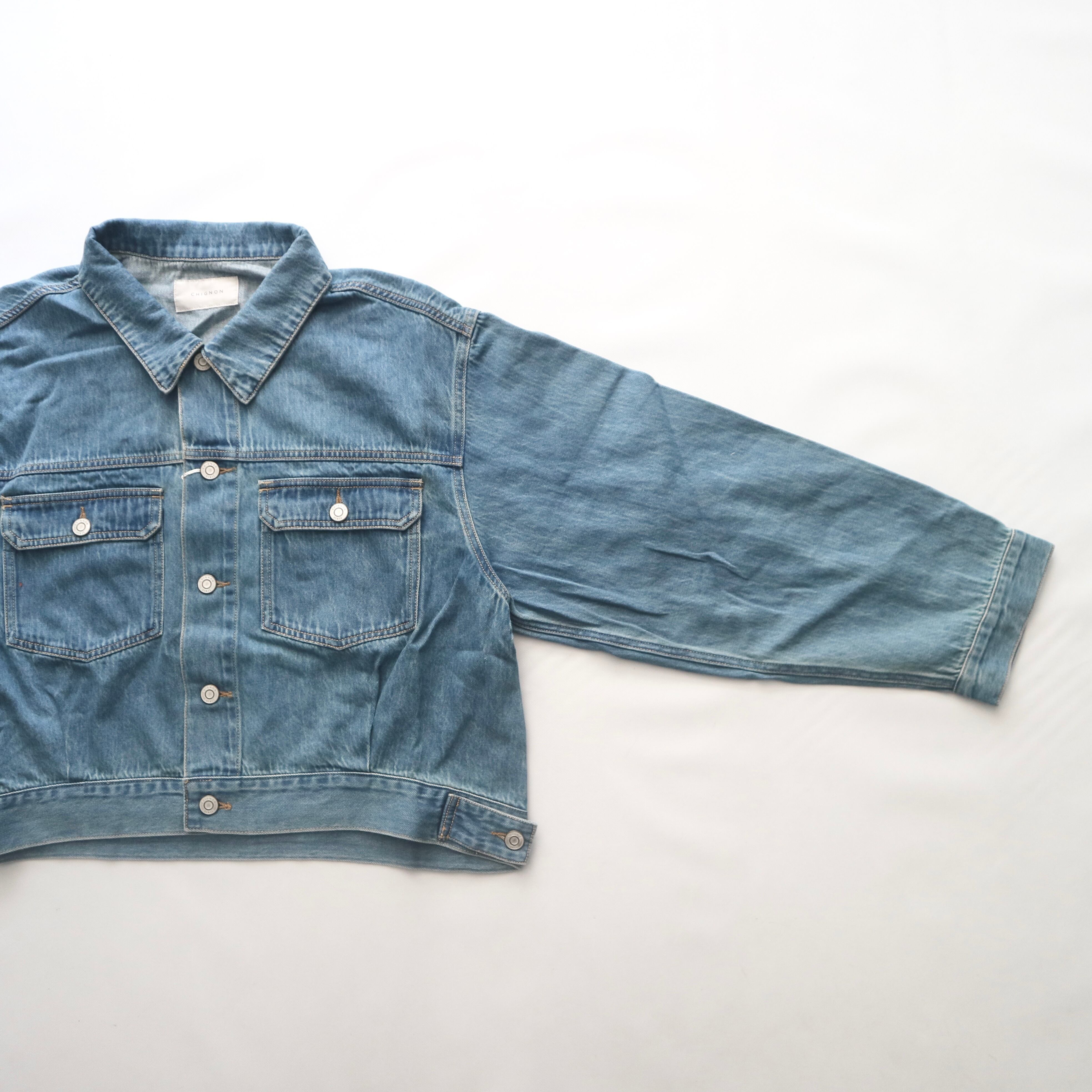 短めの丈感とたっぷりとした身頃によるワイドシルエットのデニムジャケット。