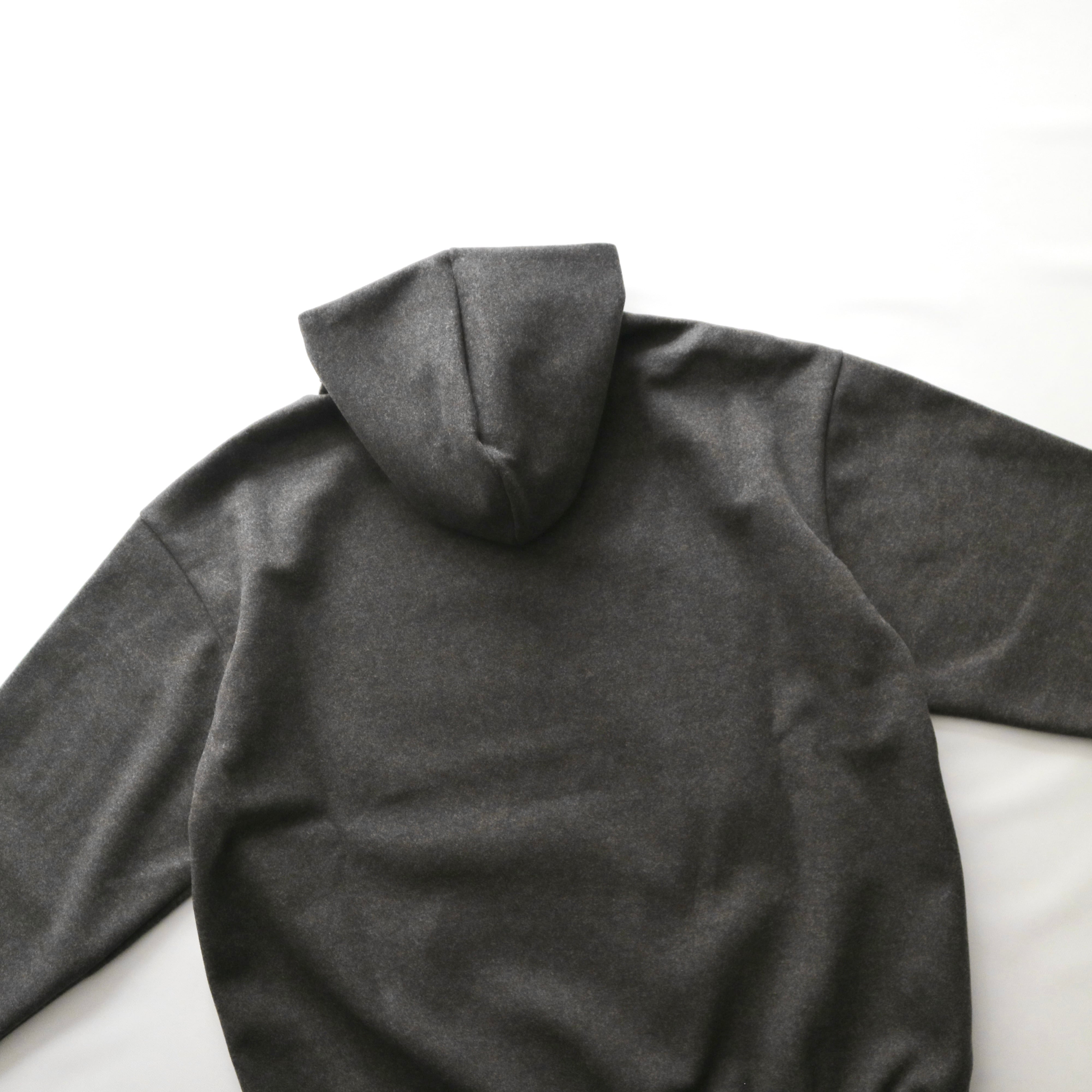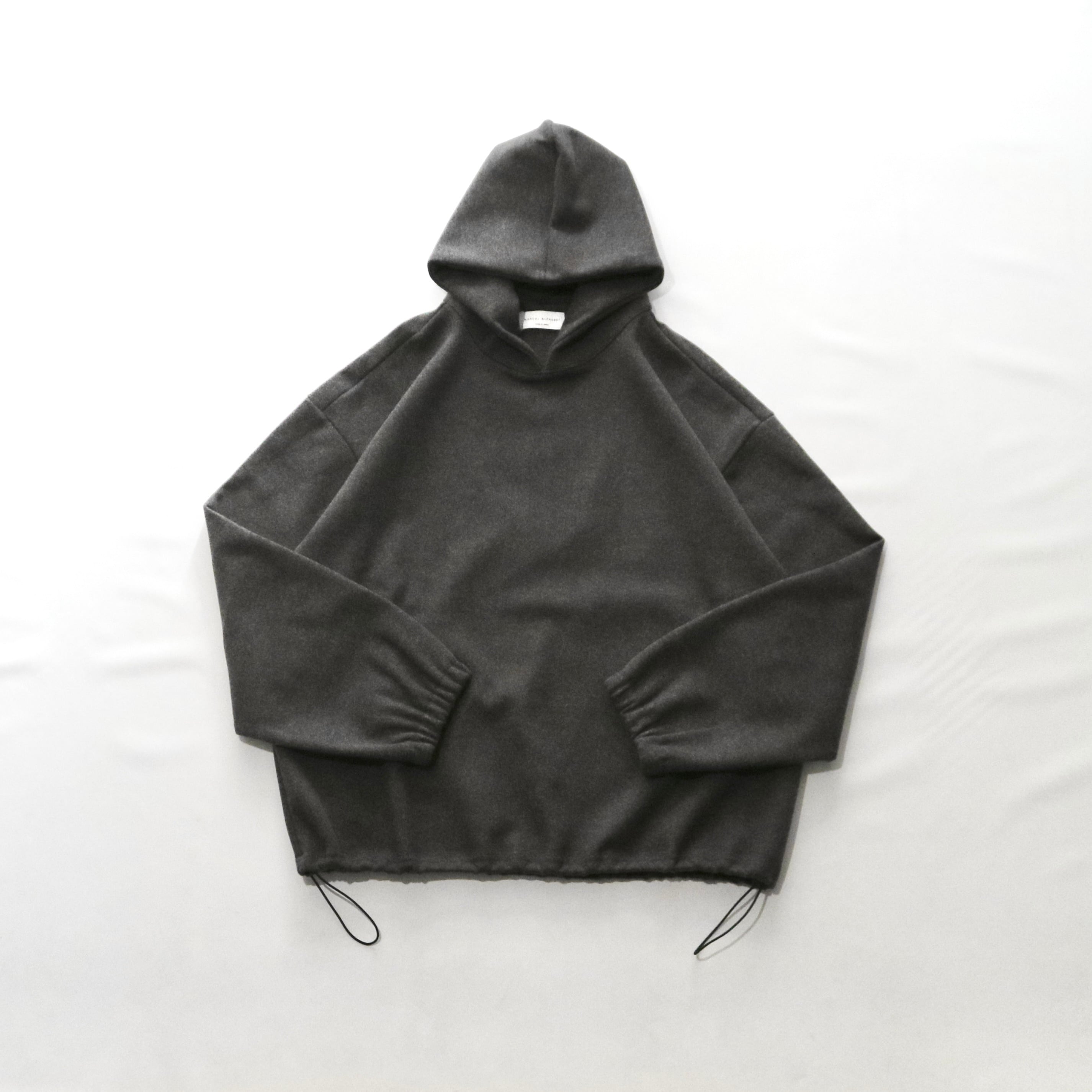 ウールライクなメルトンジャージー素材を使用したプルオーバーパーカー。