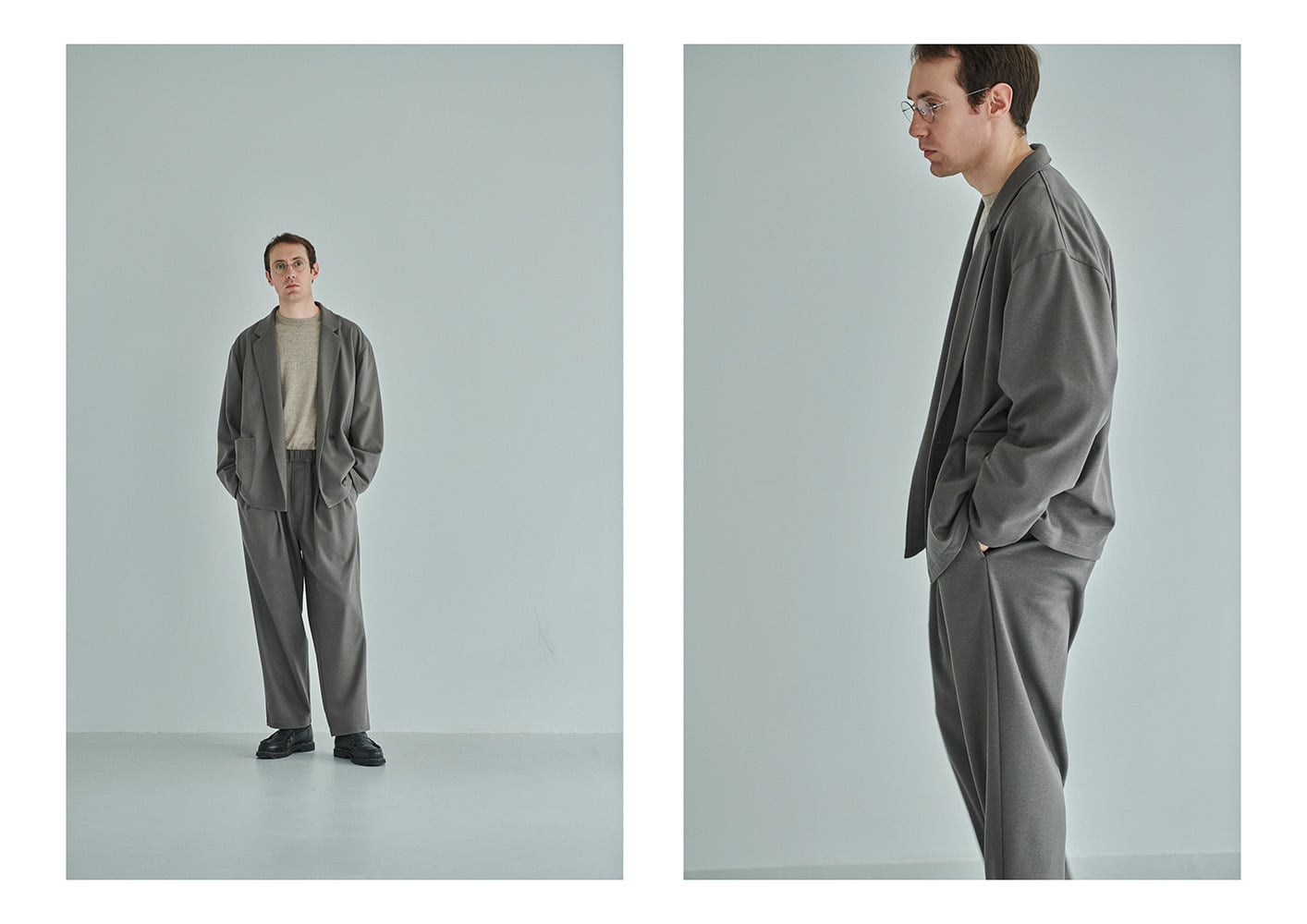 オリジナルのウールジャージー素材を使用した2タックテーパードイージーパンツ。