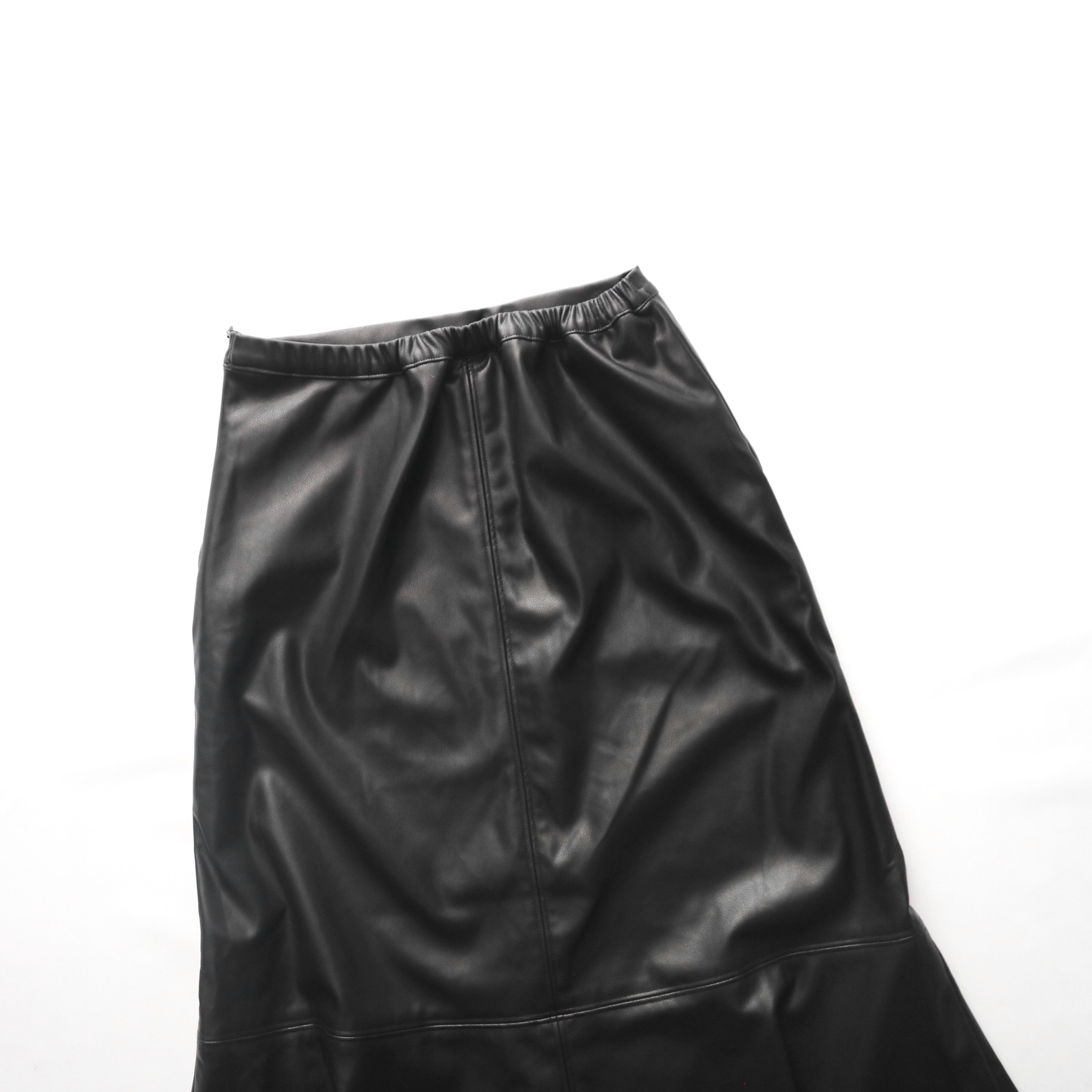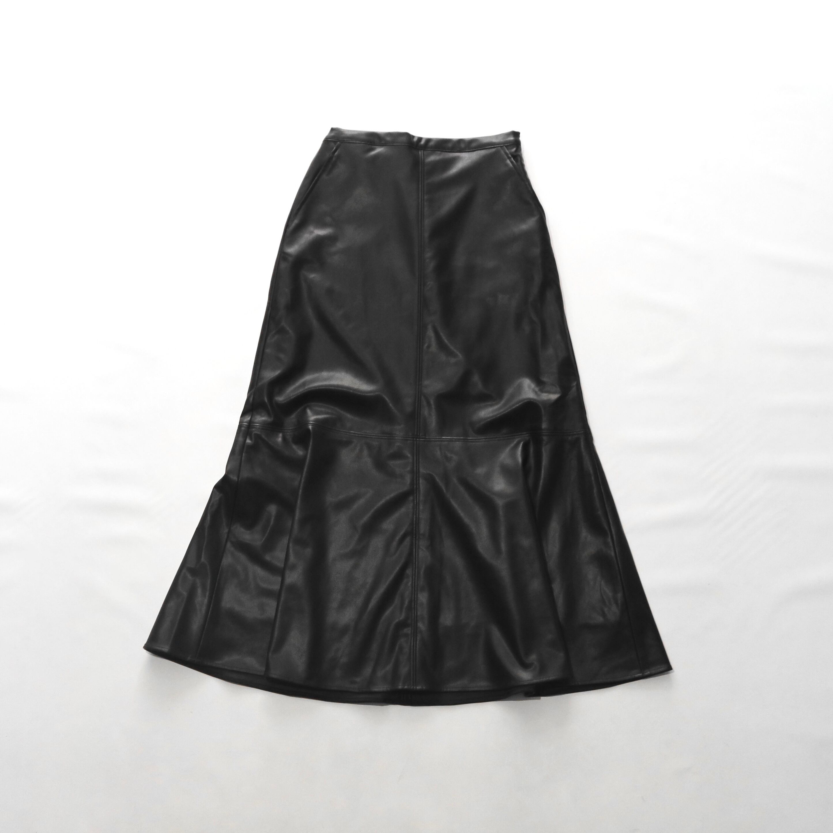 ラムレザーのような柔らかさと高級感のあるフェイクレザー使用したフレアスカート。