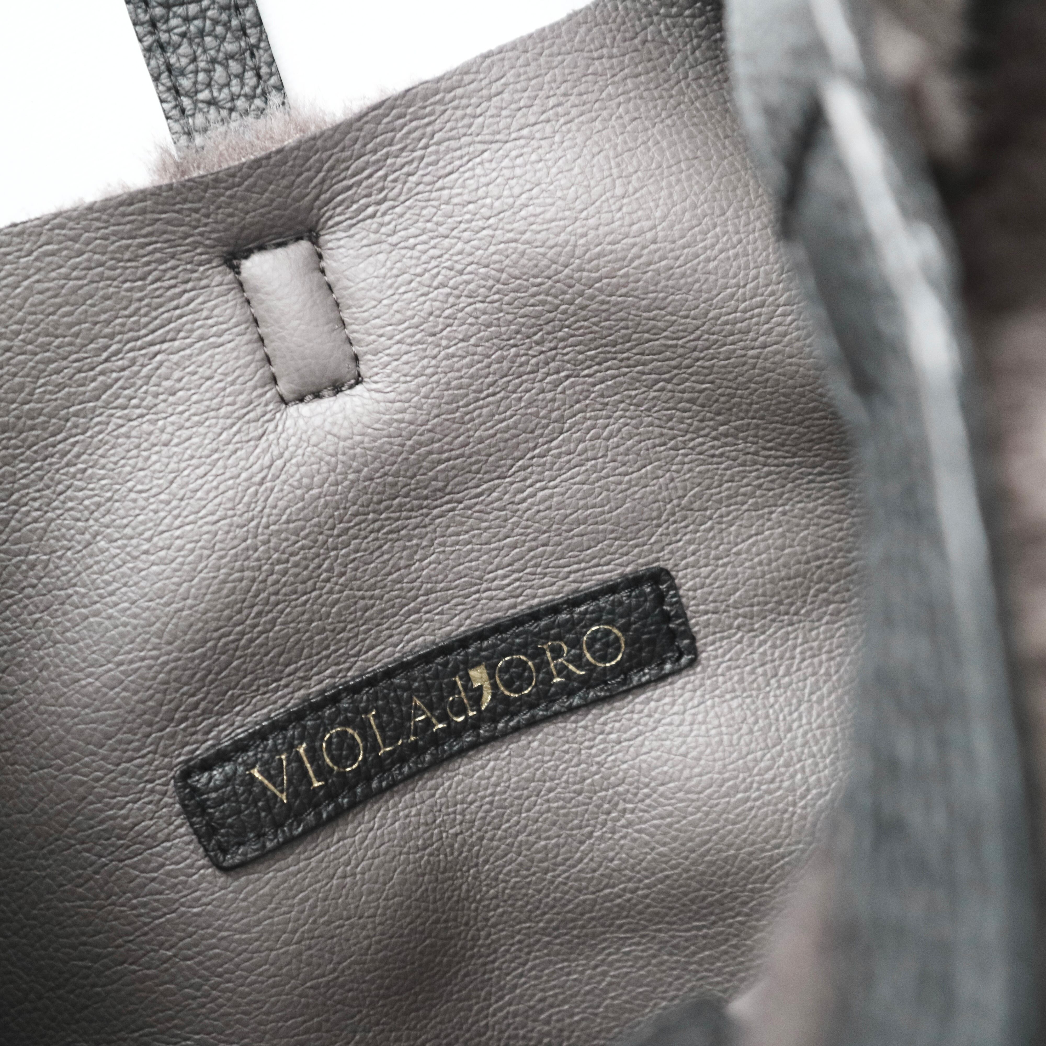 【VIOLAd'ORO ヴィオラドーロ】-ELMO- ITALIAN LEATHER×ECO FUR TOTE BAG イタリアンレザー×エコファートートバッグ V-8969