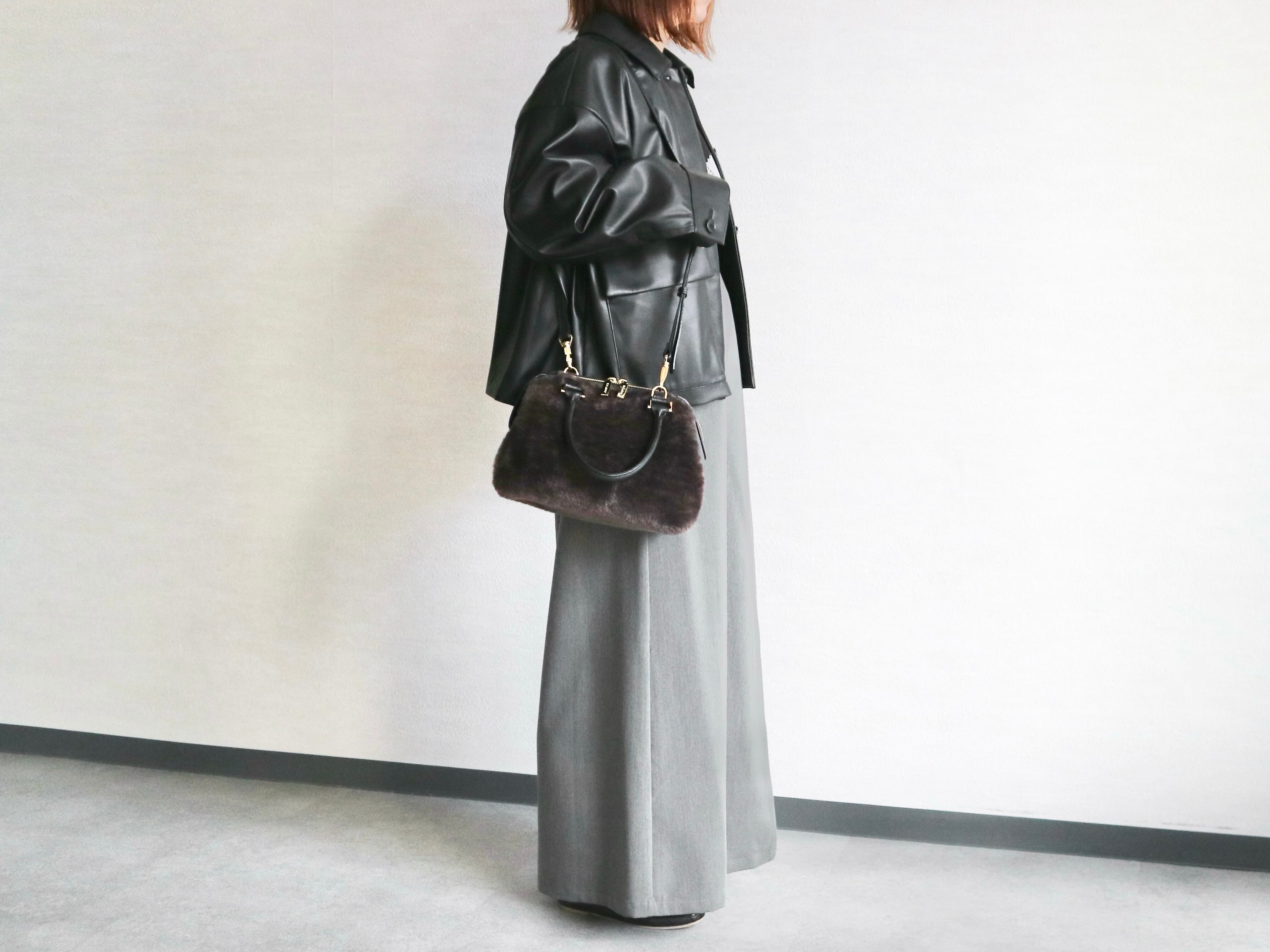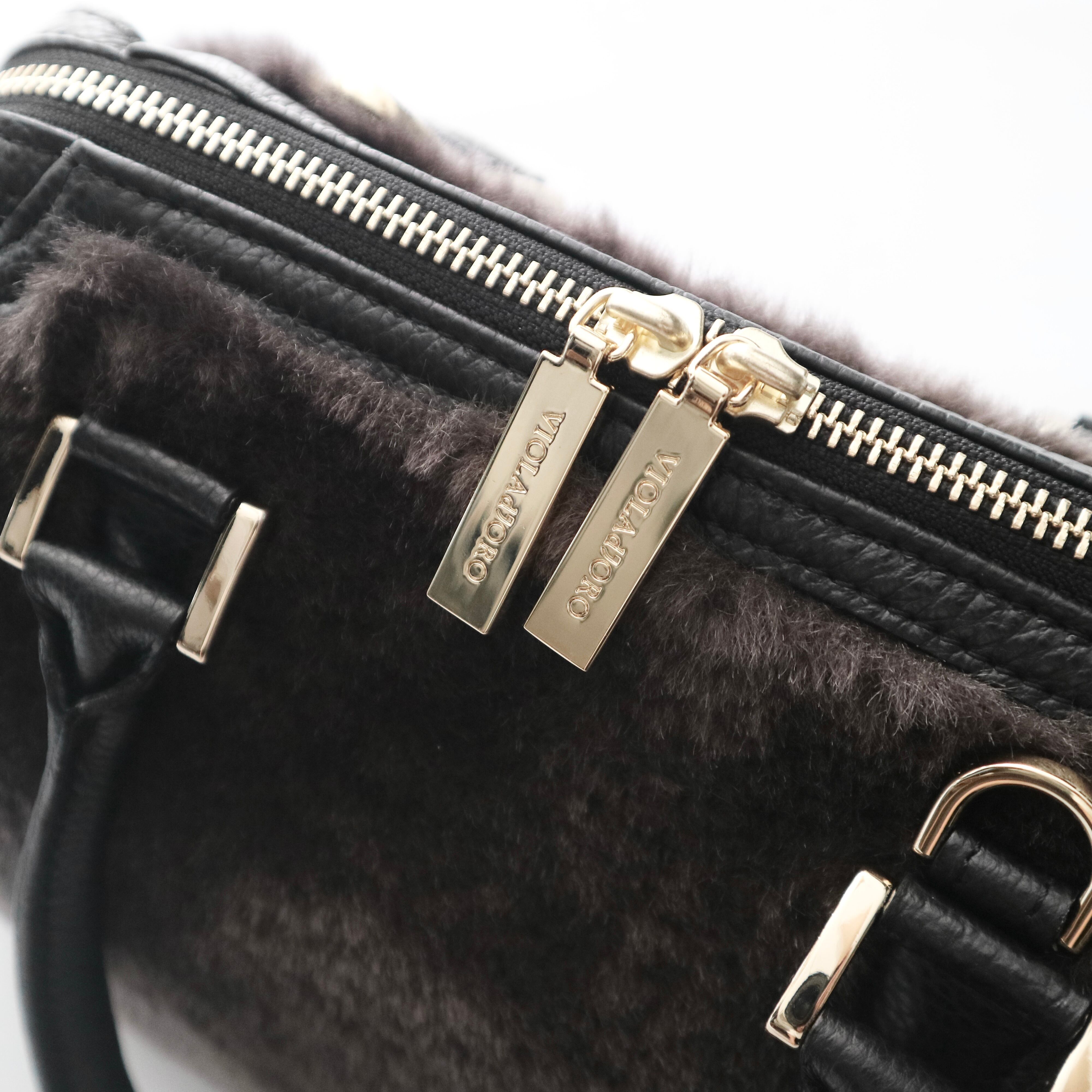【VIOLAd'ORO ヴィオラドーロ】-ELMO- ITALIAN LEATHER×ECO FUR MINI BOSTON BAG イタリアンレザー×エコファーミニボストンバッグ V-8968