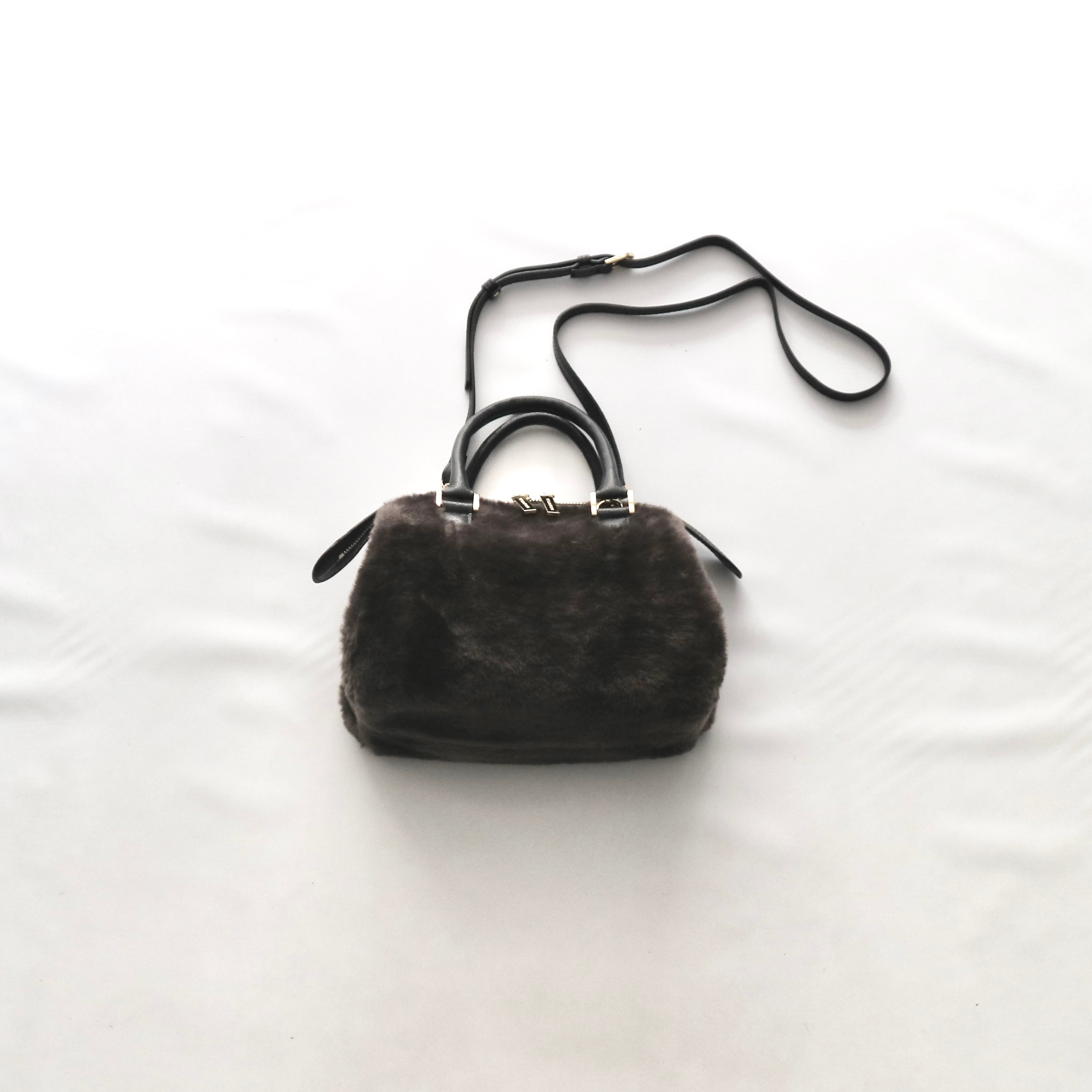 上質なイタリアンレザーとエコファーを使用したボストン型のハンドバッグ。