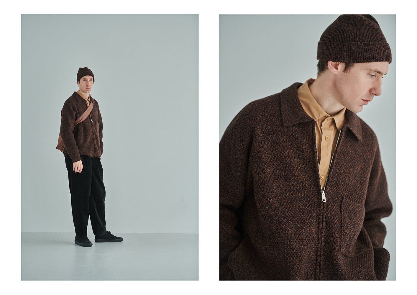 ※172cm、65kgのモデルがサイズ48を着用しております。(KHAKI BROWN、BLACK)