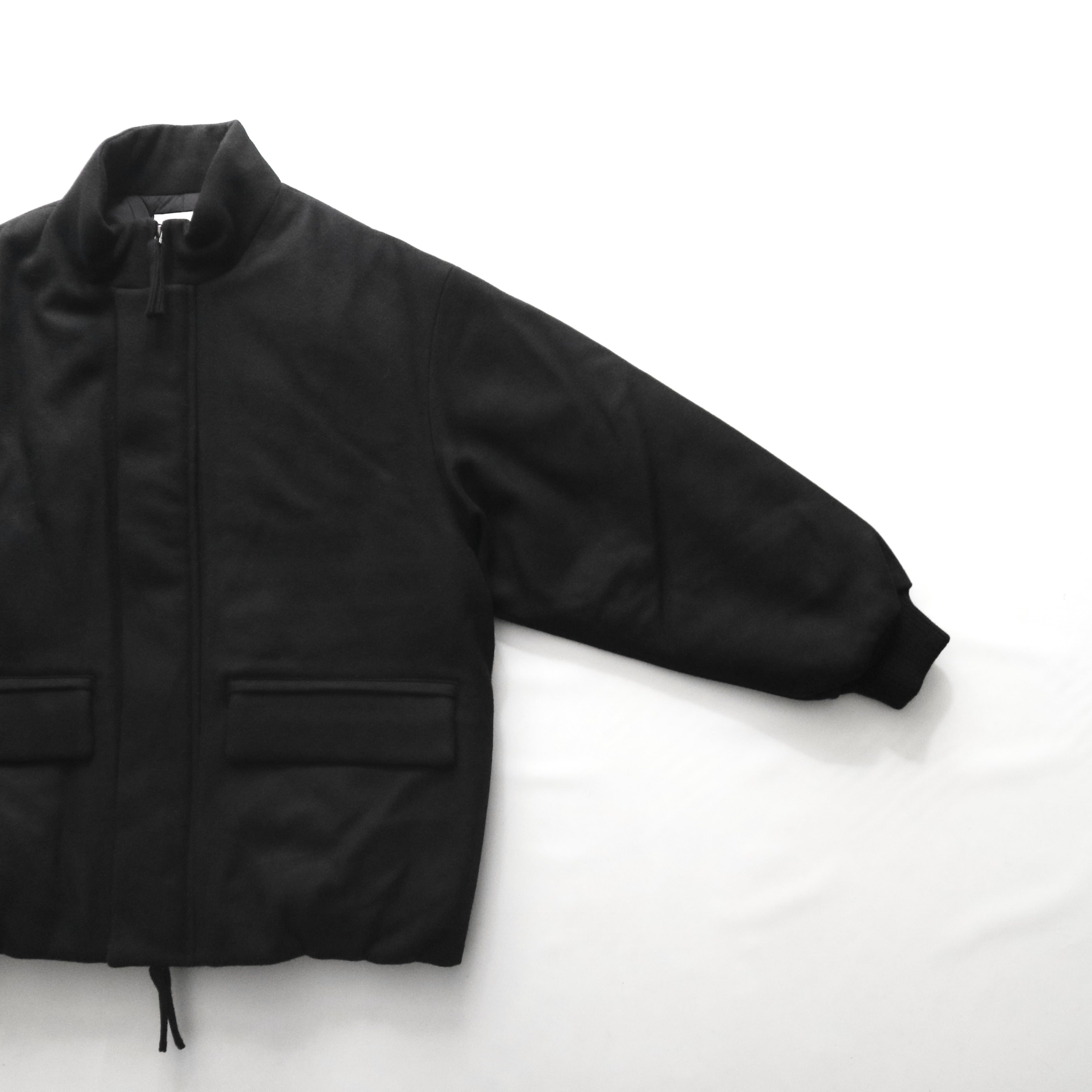 柔らかく膨らみがあるラムウール原料のメルトン素材を使用したパデットショートブルゾン。