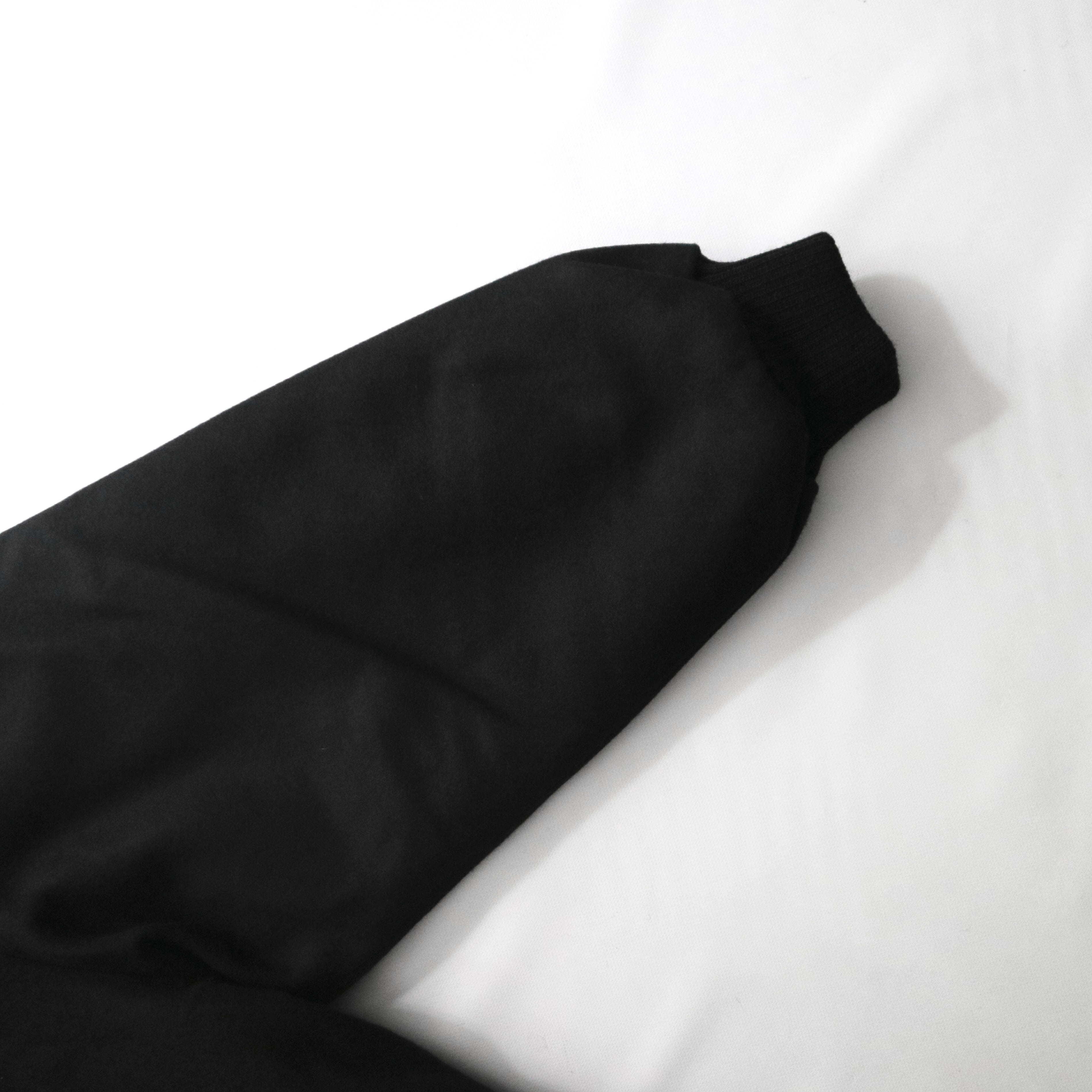 フロントはダブルジップの上に前立てが施されており、袖口にはニットリブを使用しているなど細部にまで丁寧な作りとなります。