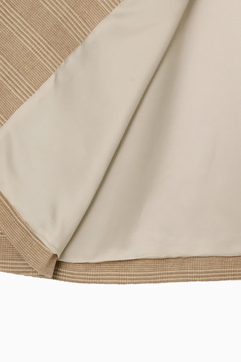 ブラックは上品な千鳥柄、ベージュは落ち着いたグレンチェック柄で、それぞれ異なる表情を楽しめます。