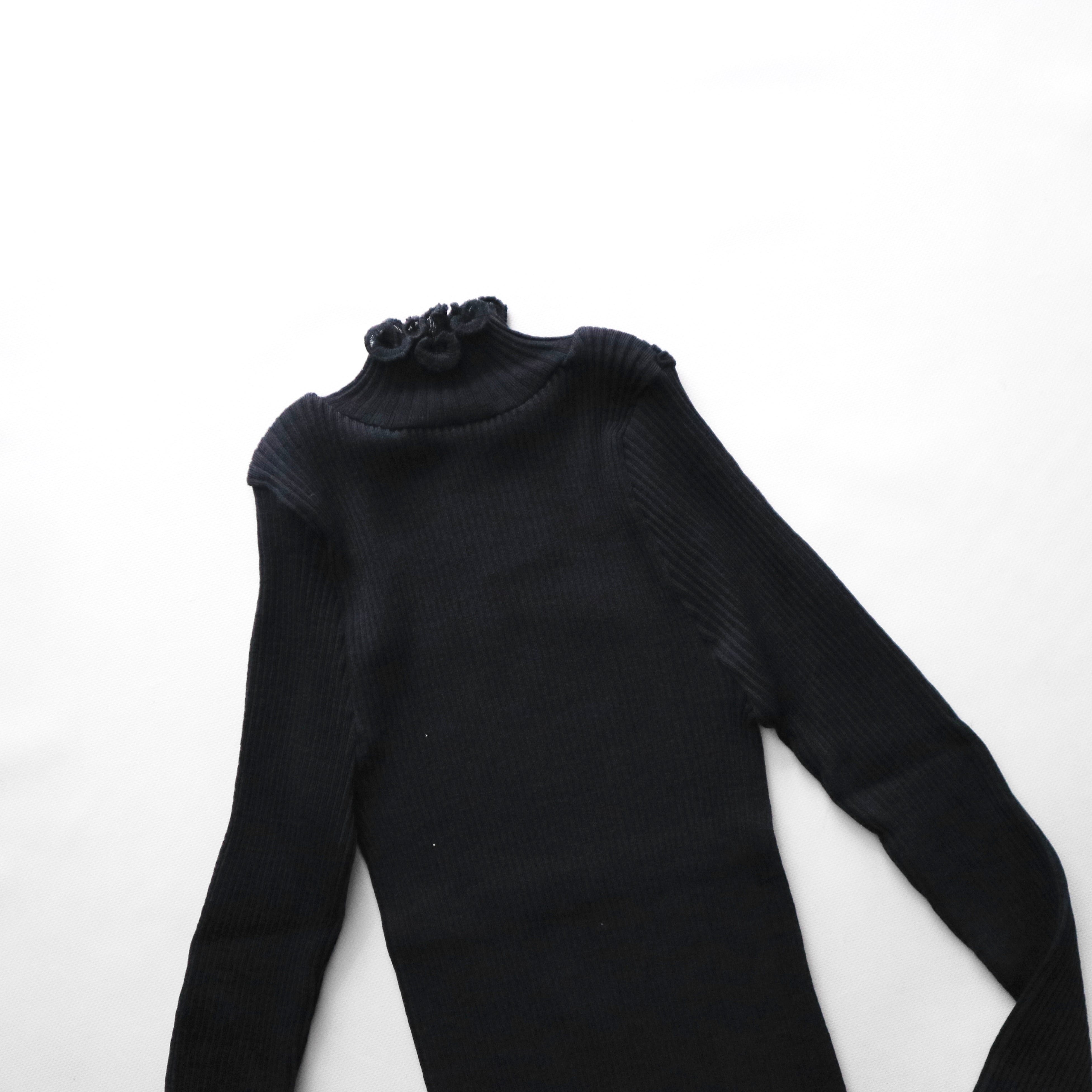 ジャストフィットで綺麗なシルエットの出るメローロックリブニットソー。
