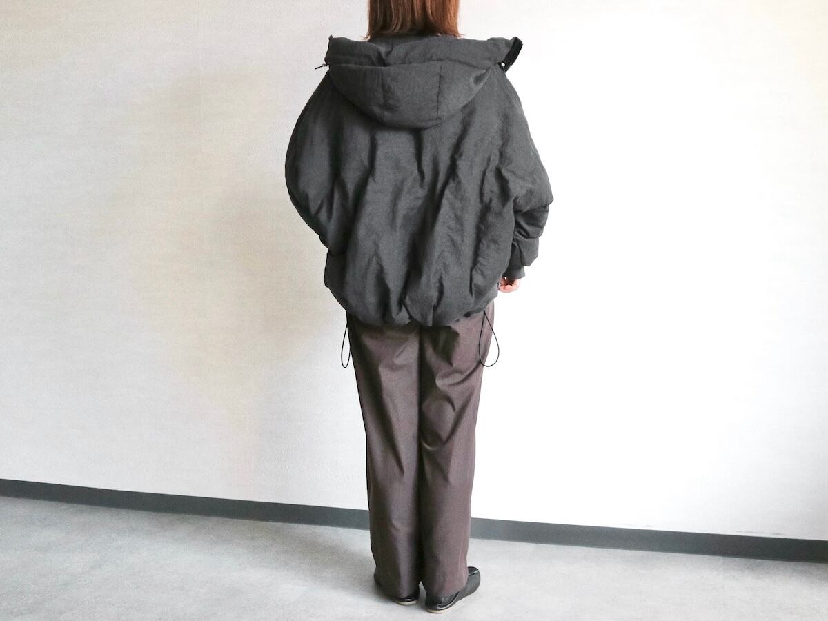 ドルマンスリーブが特徴的で、フードと首回りにボリュームを持たせることで小顔効果も期待できます。