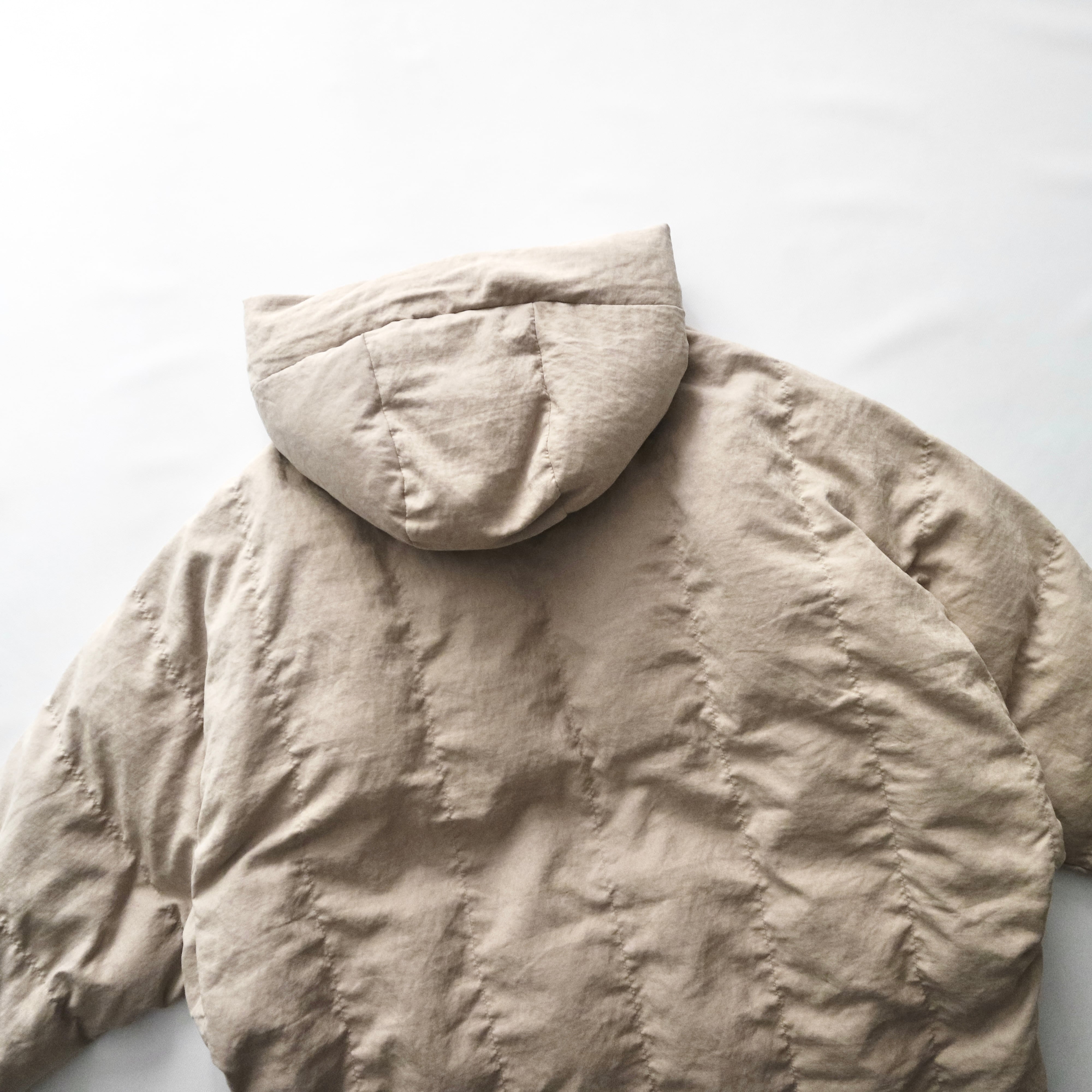 タテにステッチを施し、着ぶくれしないようなパターンにしています。