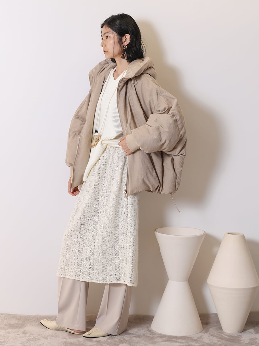ふわっとしたデザインが着るだけで様になるパフィーコート。