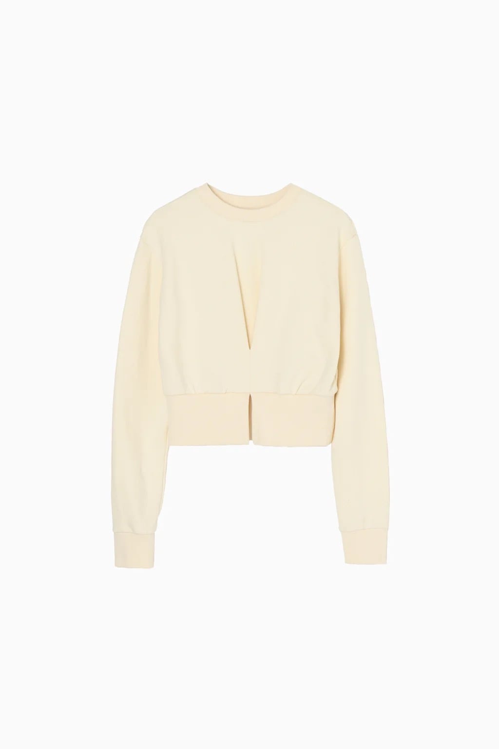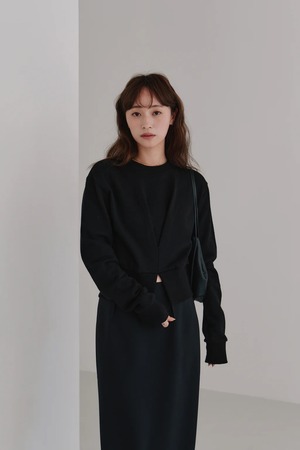 フロントのタックデザインが魅力なクロップド丈のスウェット。