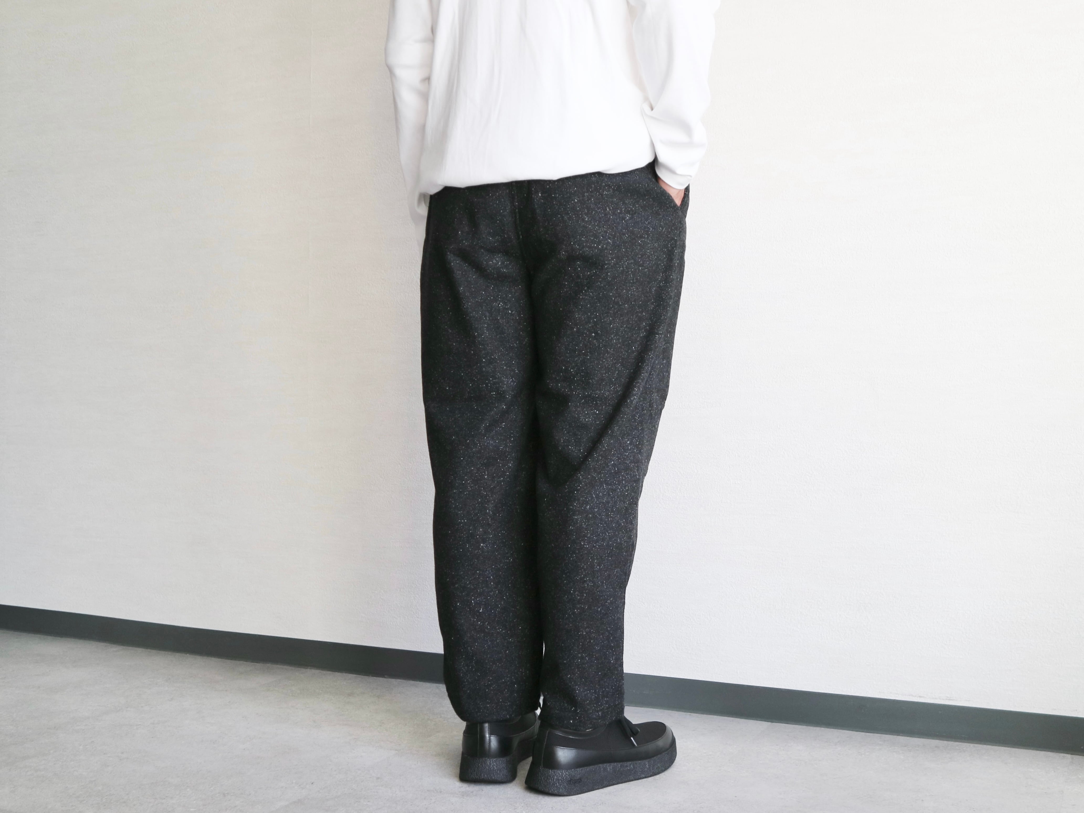 シルクネップが特徴的なウール素材を使用したテーパードイージーパンツ。