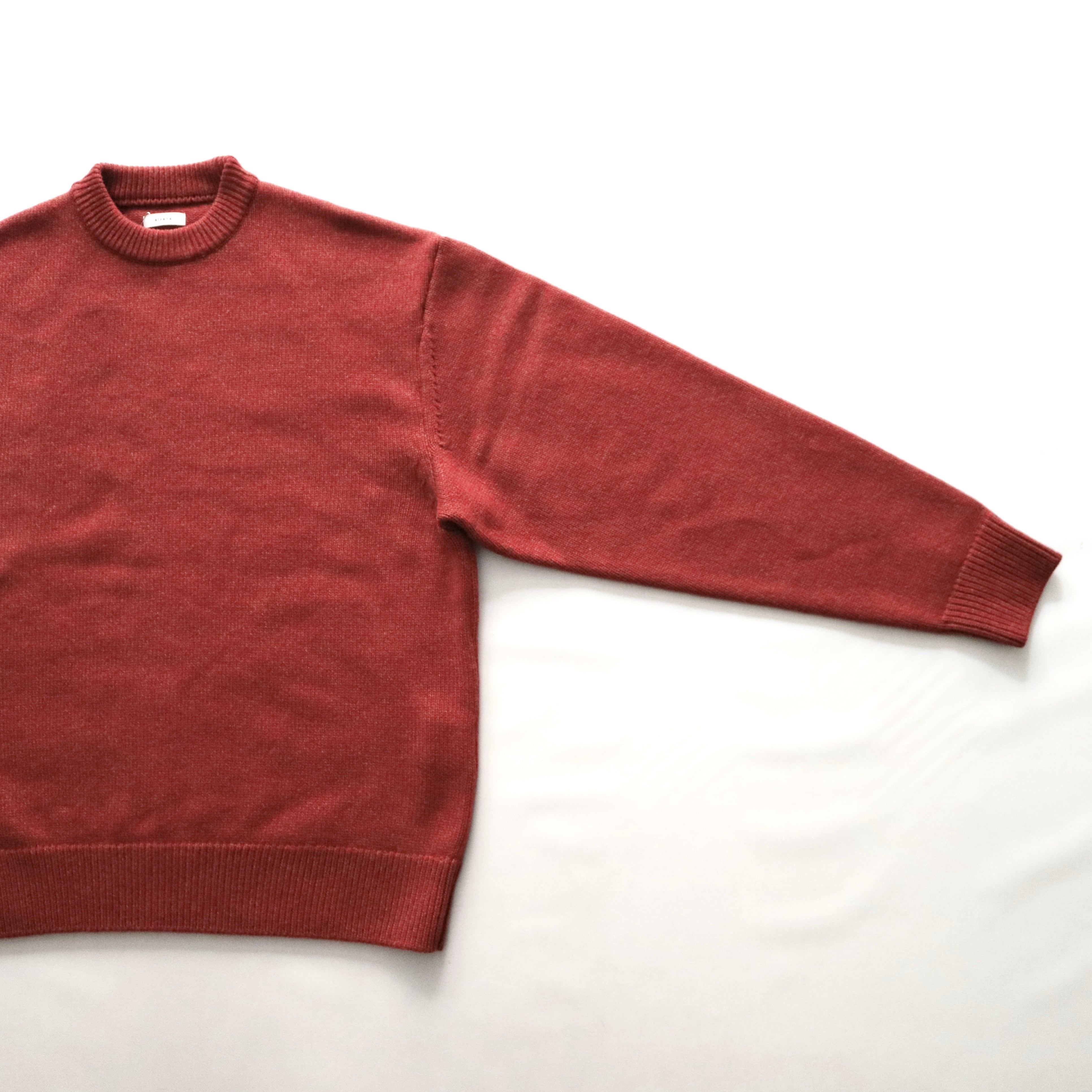 ラムズウールを贅沢に度詰めで編み立てたクルーネックニット。