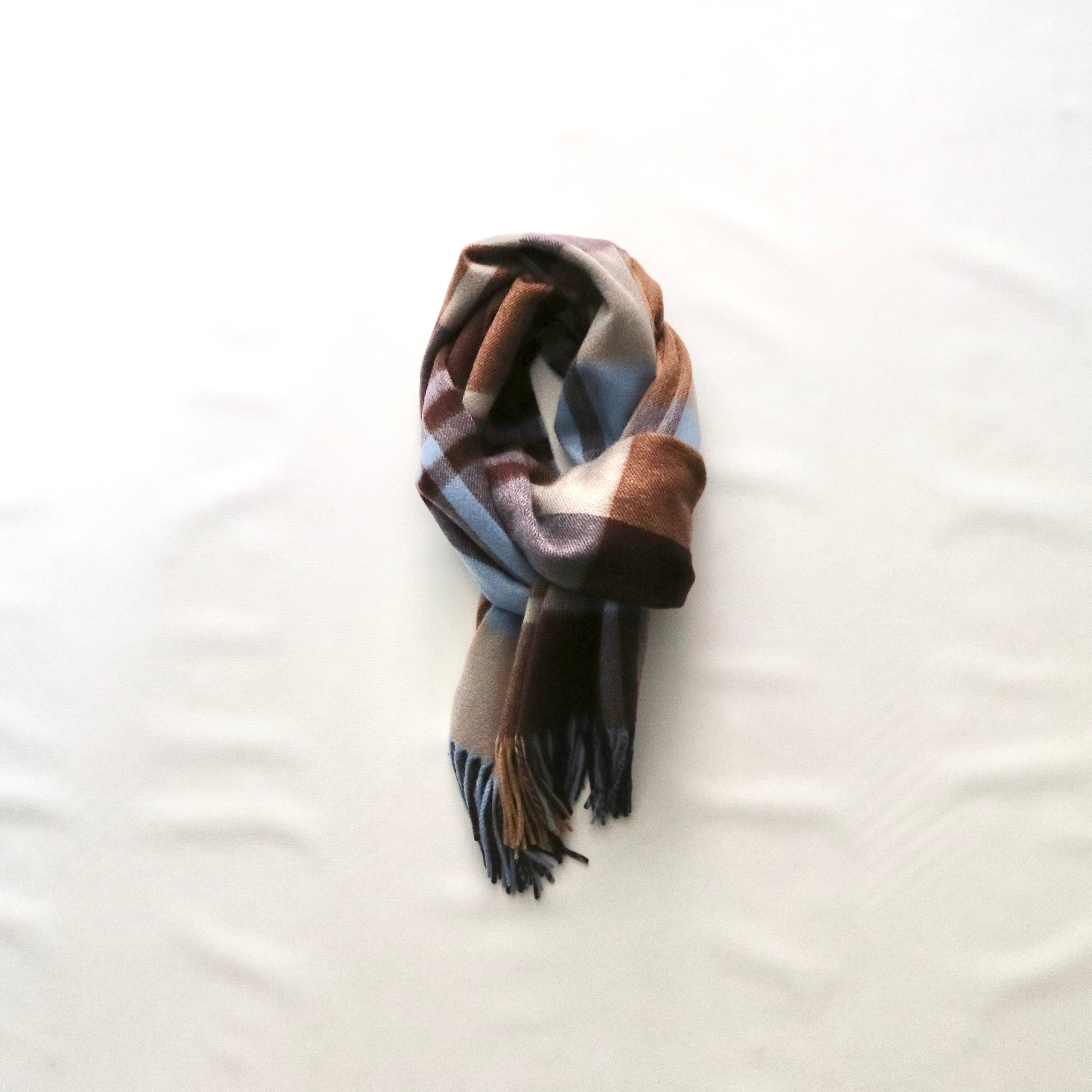 大判なのでアレンジ自在で肩から羽織ったり、首に巻いたりと様々なシーンや着こなしに活躍してくれます。