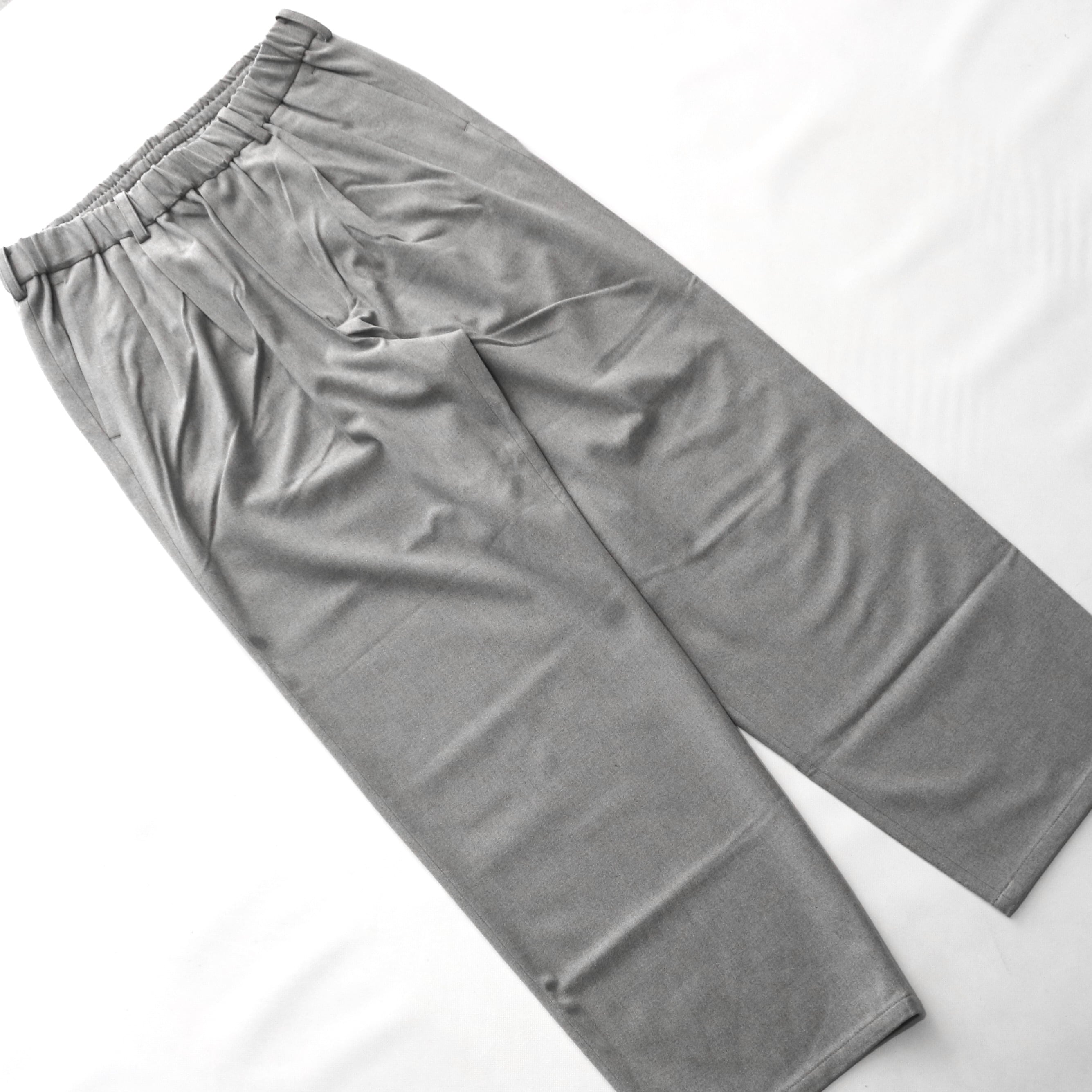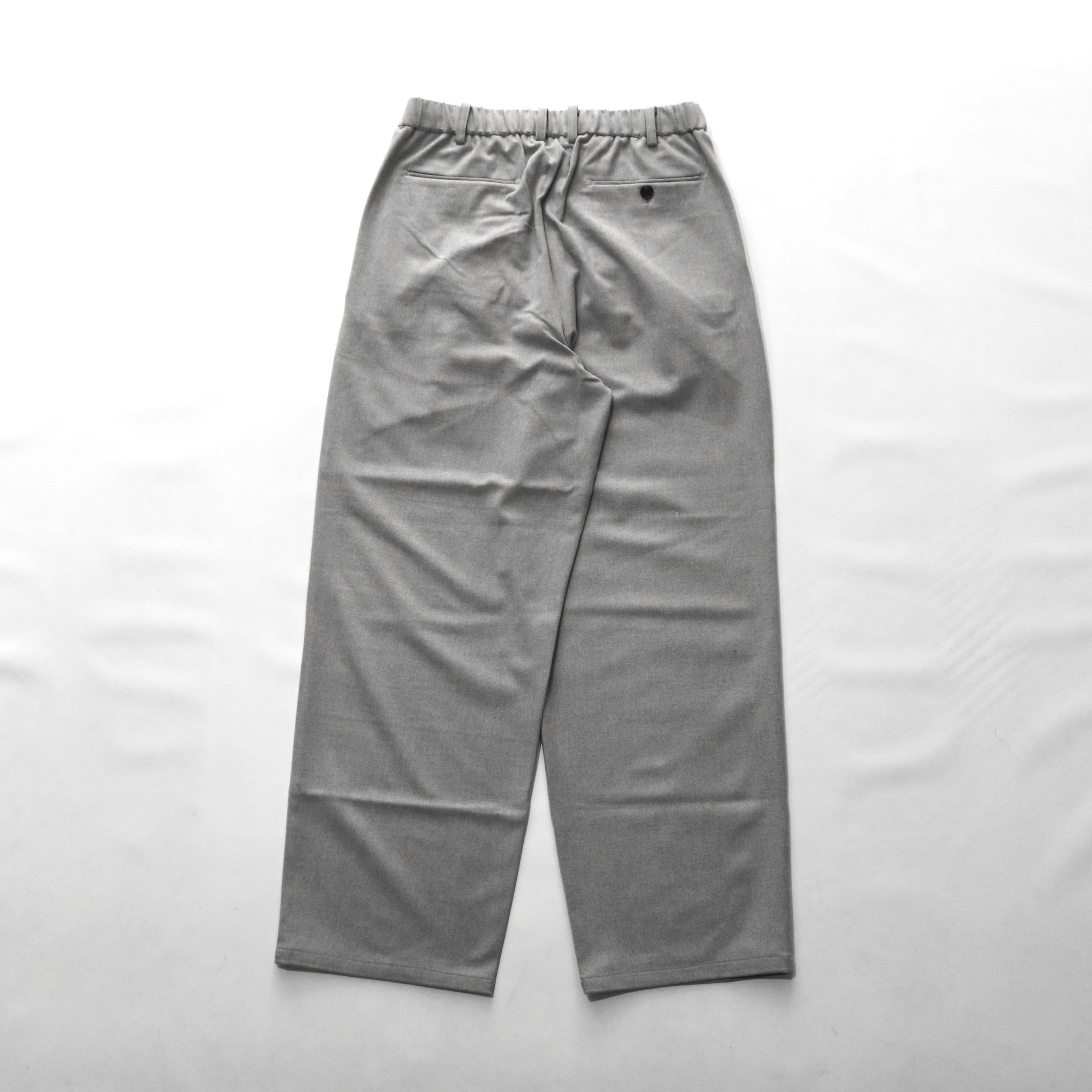 2タックの入ったワイドなシルエットではあるものの、生地の落ち感により着用時にリラックス感のある綺麗なシルエットに仕上がります。