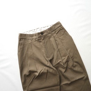 強撚糸を使用したオリジナルのコットンシャンブレー生地を使用した2タックパンツ。