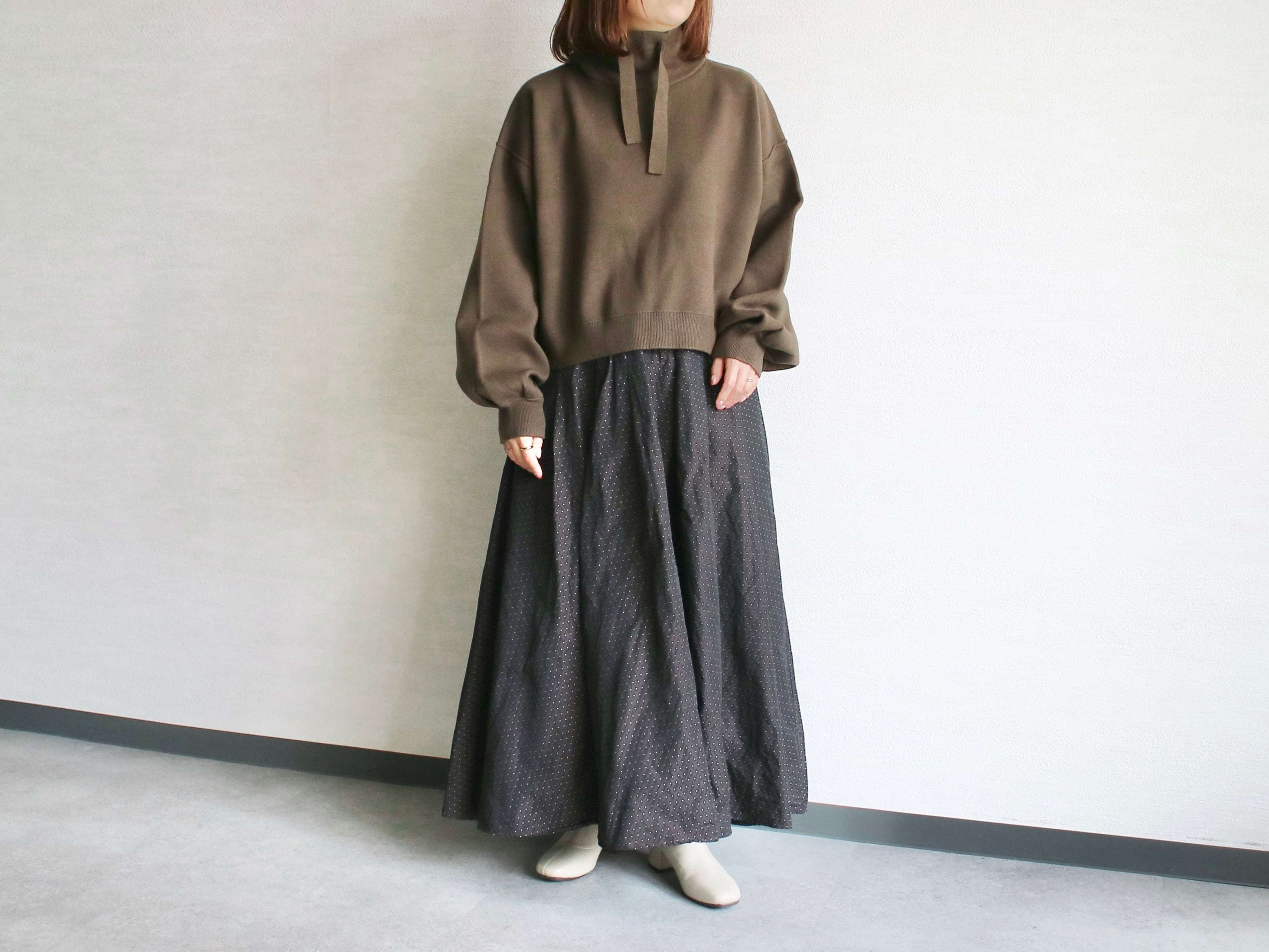 コットン混のなめらかな肌触りの糸を14ゲージでスムース編みにしたハイネックプルオーバーニット。